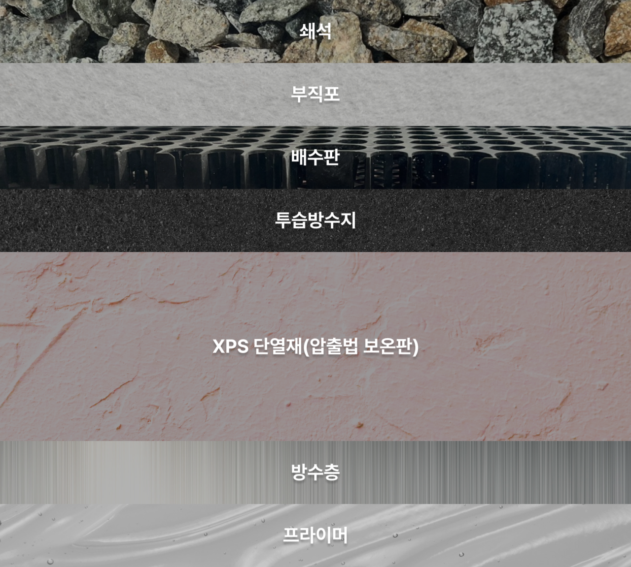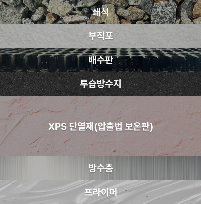 방수층, 단열재, 보호층, 이중배수까지 모든 레이어가